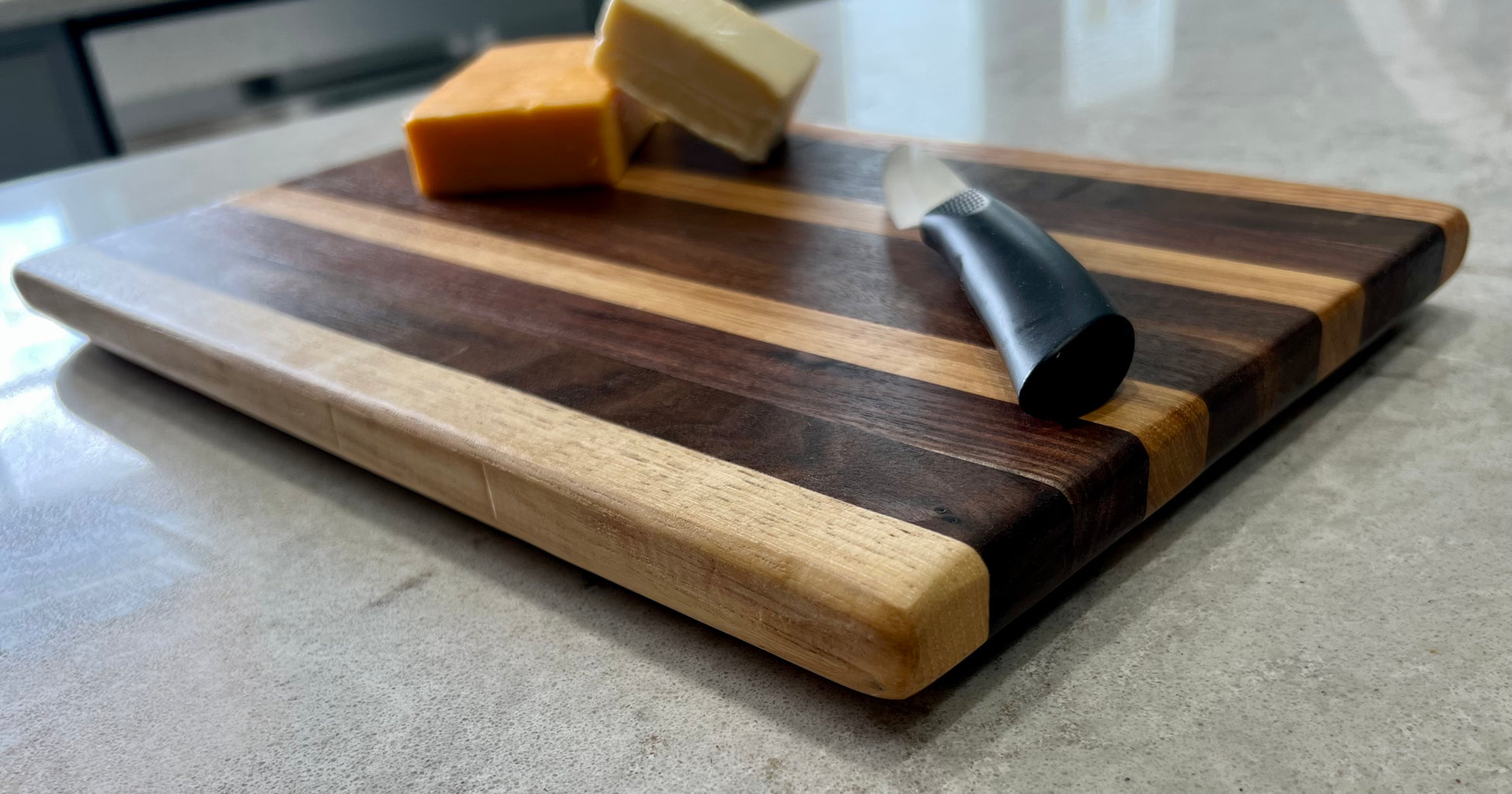 Beveled edge for easier handling. Perfect size for any food prep. Sanded smooth and finished with a homemade mineral oil and beeswax mixture.